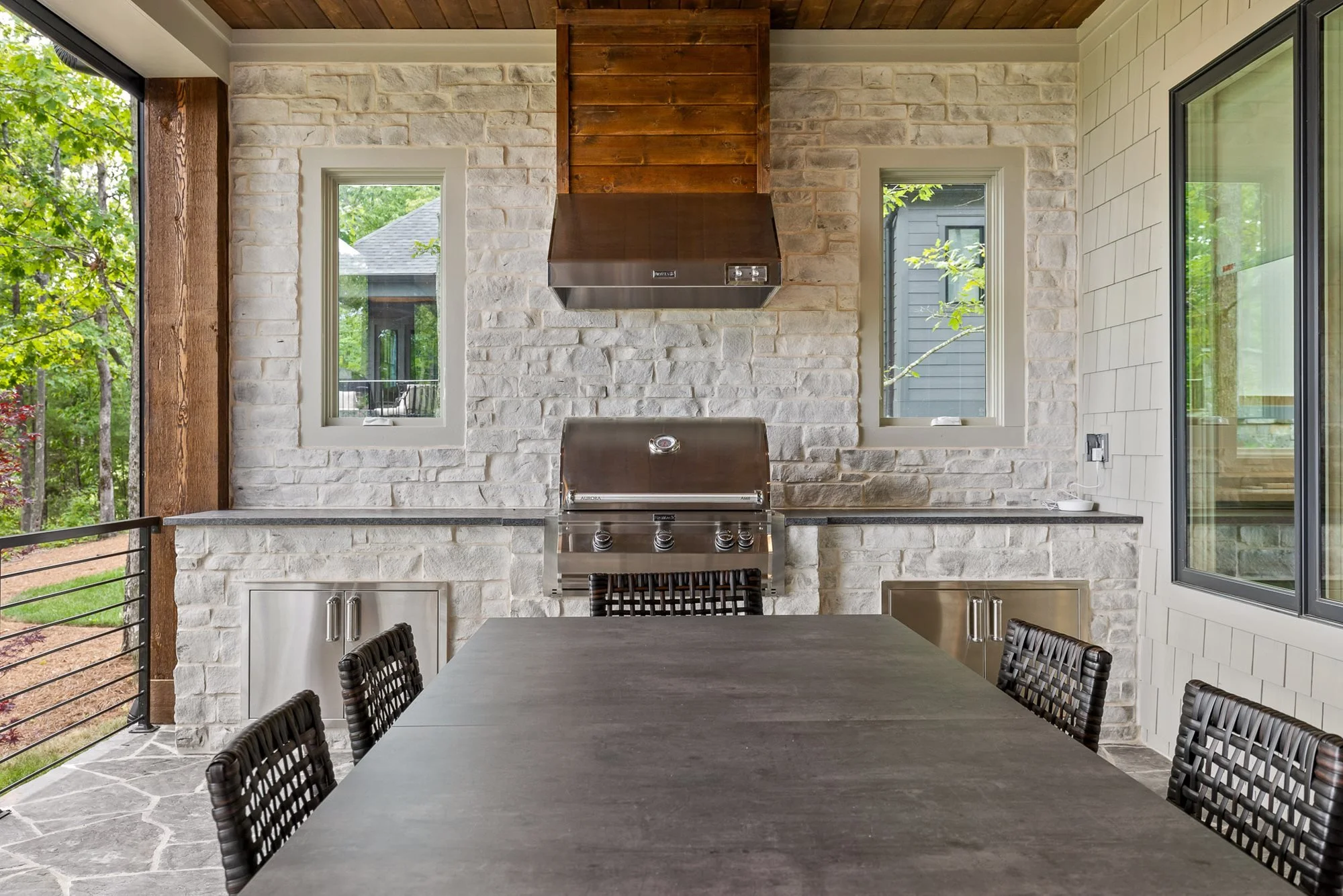 This home features five bedrooms, each with ensuite bathrooms, comfortably accommodating five or more guests. Indoor and outdoor living and dining spaces are complimented by a cozy gas fireplace on the back porch and an outdoor wood firepit for evening gatherings. Memorable experiences and lasting memories will be made on this breathtaking property!