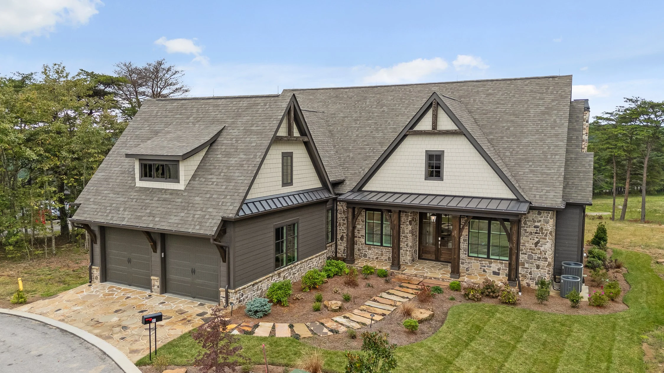 The Clubhouse Cottage delivers elevated mountain living in McLemore’s Golf Village with 2,874 square feet, a stone exterior with metal roof accents, and authentic wood beams. One level main living connects great room, dining, and gourmet kitchen, opening to a covered porch with wood burning fireplace and built in grill overlooking the course. A den or office sits off the foyer, three main level bedrooms include en suite baths, and a private fourth bedroom rests upstairs. Finishes include seven inch engineered hardwoods, a wet bar in the great room, a main level owner’s suite with zero entry walk in shower, ten foot ceilings and eight foot doors on the main level, and custom wood cabinetry throughout.